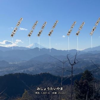 もらった絵文字24写真9枚05:4512.6 km746 m根本山・坊主山・秋葉山(上野原市)・八重山・能岳・虎丸八重山・能岳・聖武連山・要害山(山梨,神奈川,東京)2025.12.29 (月)日帰りうめ