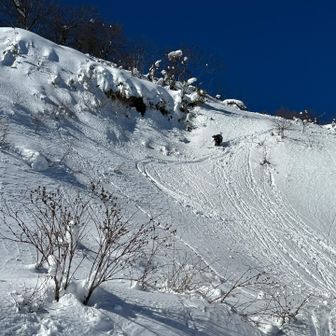 林道を滑る❓それじゃ面白くない(たぶん) Goさん、東屋から急斜面をドロ〜ップ⛷️ ヘルメット🪖忘れたそう、、気をつけてね🤲