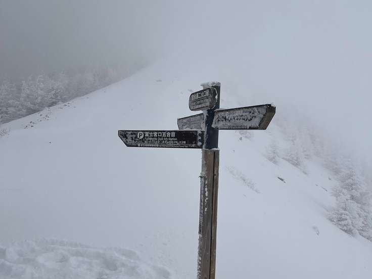 雪の宝永山 第二火口まで