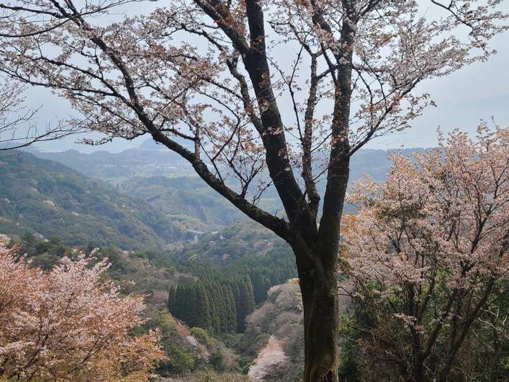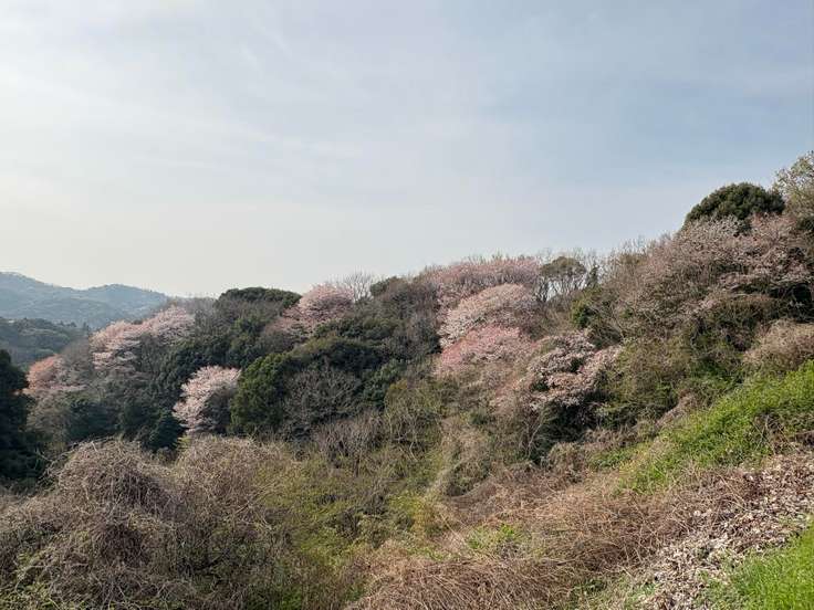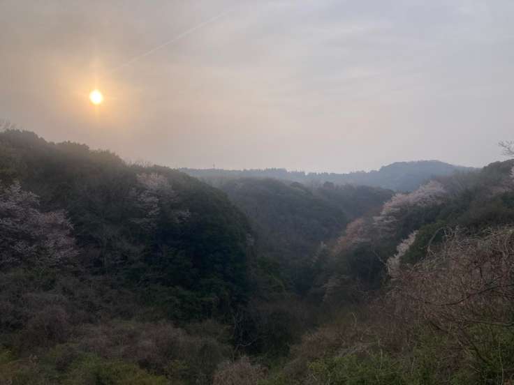 無事下山、道路を挟んで桜🌸 今日も楽しいお山をありがとうございました。 まだ朝やけど…