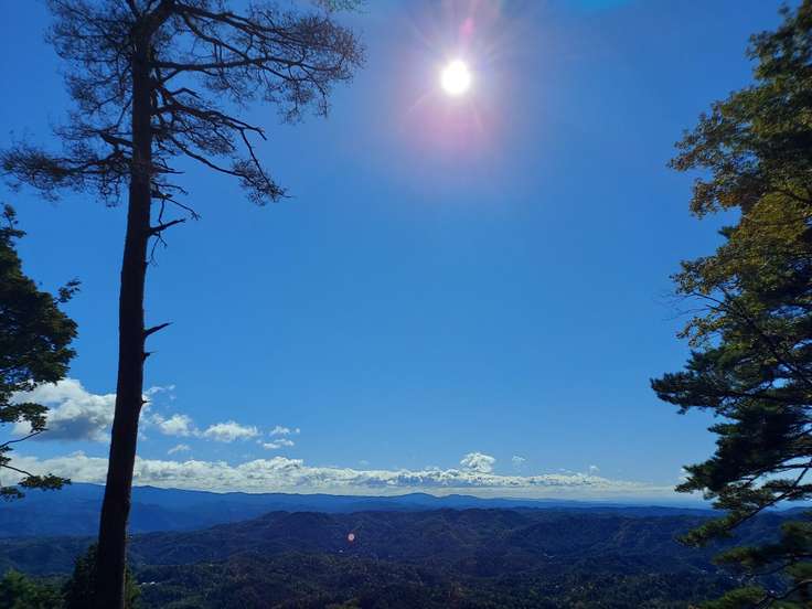 鶴岡山山頂、別名すわがね(諏訪ヶ峯陣城跡)の絶景展望所もチェックポイント このデッキや至る登山道は最近の有志の整備だそうで、ここも地元に愛されている山なのだと嬉しく感謝🙏 戦国期、武田氏との攻防の折に織田の信ちゃんや明智の光ちゃんも布陣したそうな