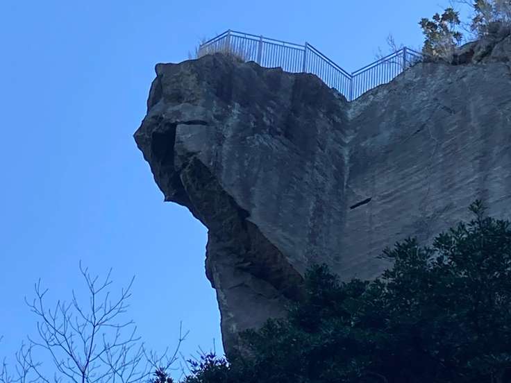 岩が張り出した場所で、皆行列作って記念写真