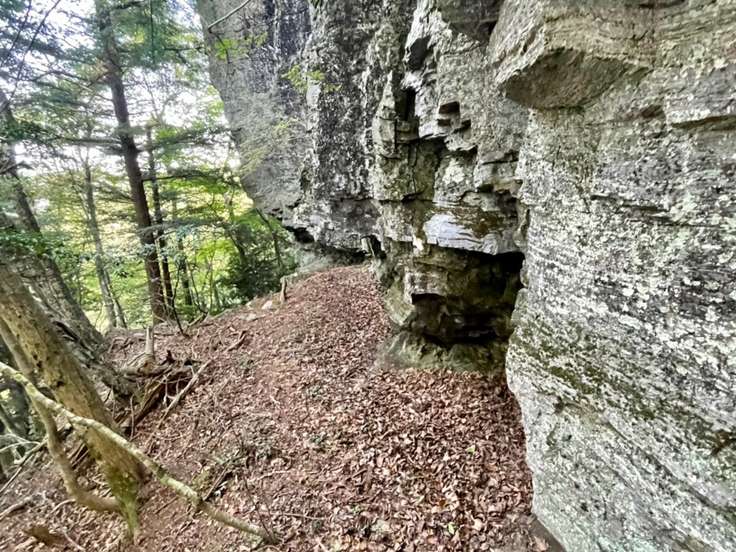 岩が立ちはだかっています。ここが標高点850mの地図上での壁岩峠で、文字通り正面に壁岩があります。この岩は意外とすんなり正面から登ることができました