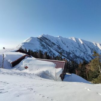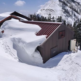 冷池山荘は2階屋根まで雪に埋もれてます 冬季避難小屋は使えます🏠