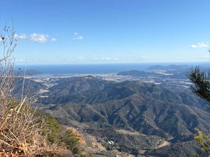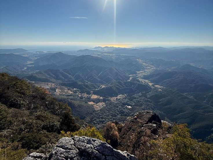 南方向、門川湾と日向市の間に陽があり海に反射していました