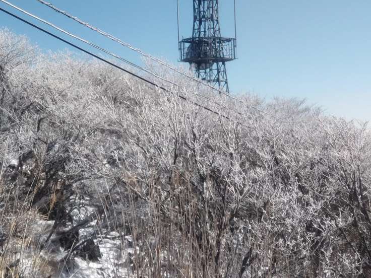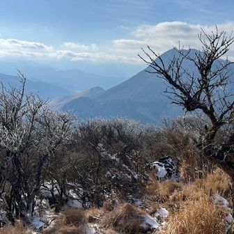少しだけ残る霧氷とくじゅうオールスターズ🤩 そして由布岳‼️カッコいい👍