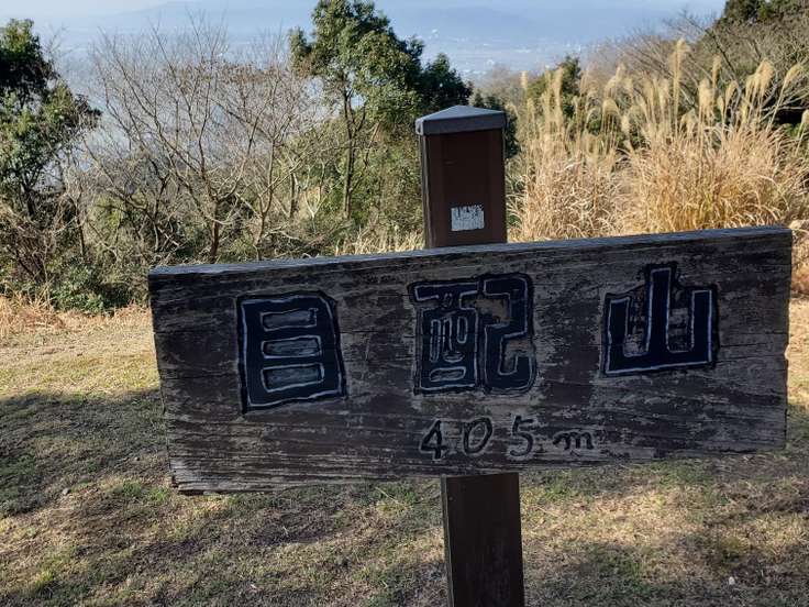 大己貴命神社(おおなむち)⛩️の横道を入り、 池の側に駐車すると登山口あります。 そして快適な登山道を登り上がると 目配山山頂 405m