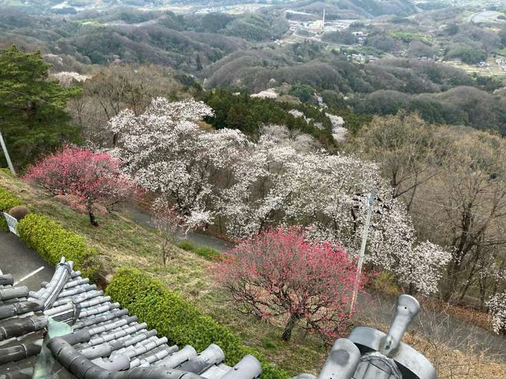 山頂の参道はまだ8分咲き