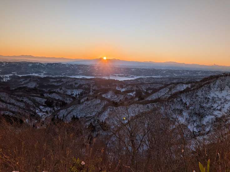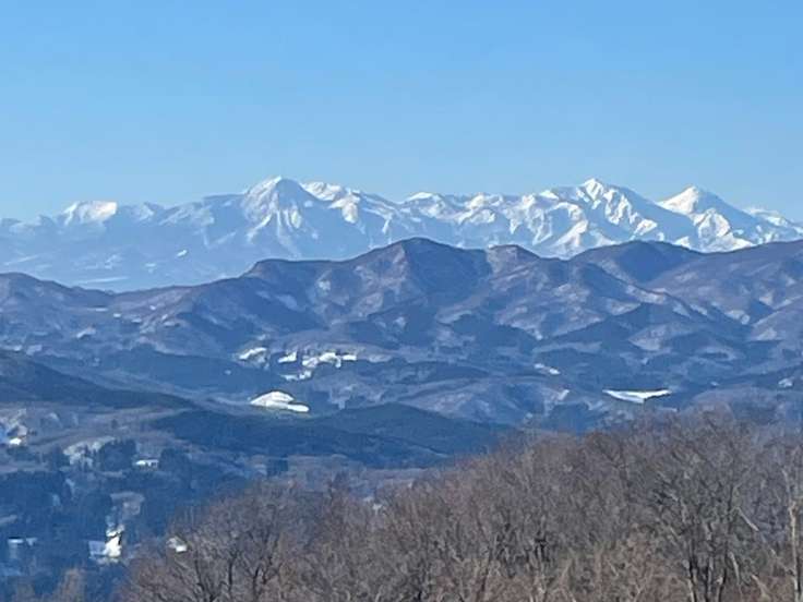 展望台から 原発送電線が異様👀 奥に粟ヶ岳と飯豊連峰。 肉眼では鳥海山も見えたよ🎶🎶