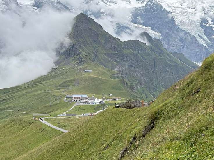 もらった絵文字15写真20枚04:046.0 km142 mMürren hike enjoying Eiger, Mönch, Jungfrau viewユングフラウ2025.07.06 (日)日帰りANZ