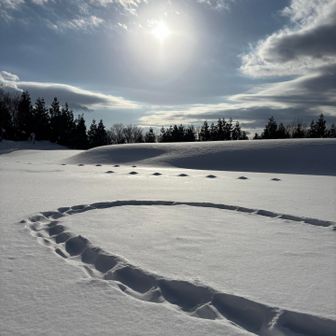夏の駐車場まで降りて来た! 疲れたので休憩がてら雪遊び🦖