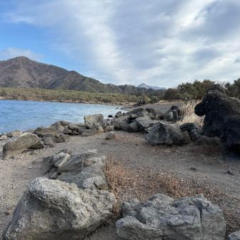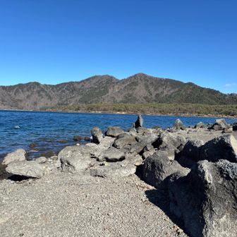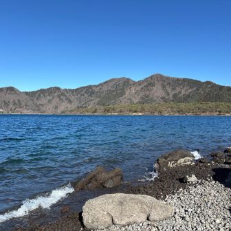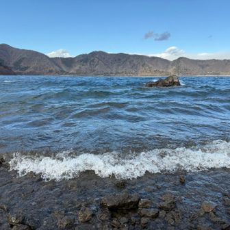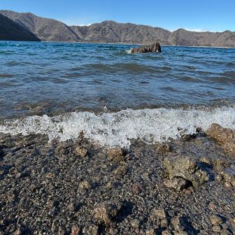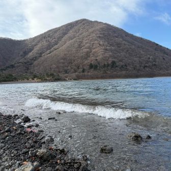 風のため波の荒い本栖湖