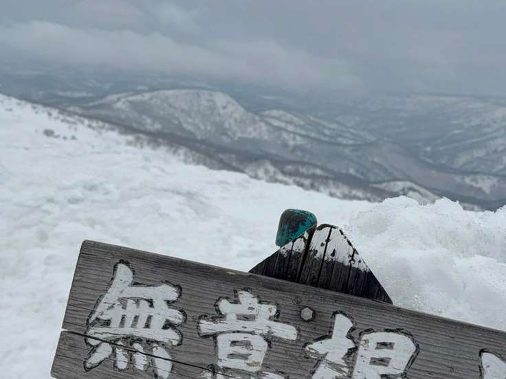YAMAPのピークのランドマークまで歩いて、一応記念に…ね🤳 ※⛷️滑走時はタンブラーをザックの中に入れているよ。