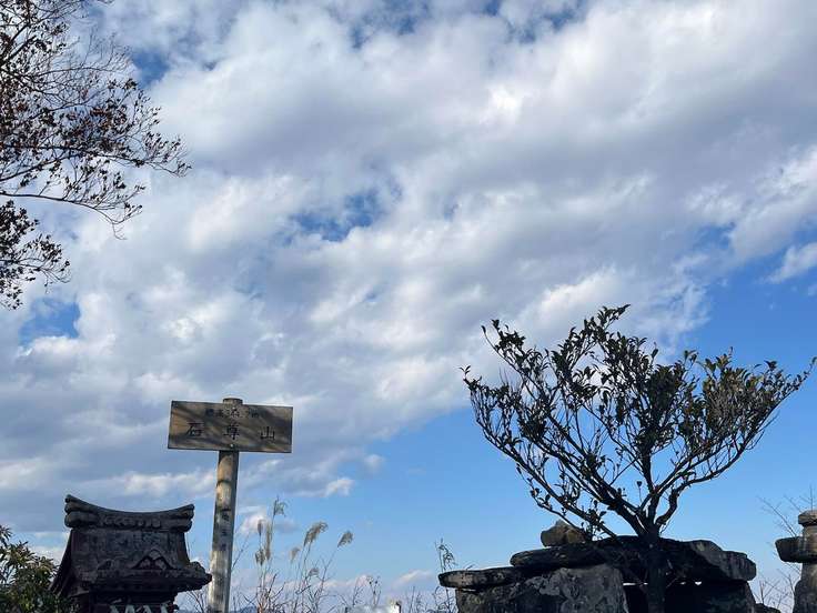 石尊山に着きました♪ 低山あるあるですが、我が家より標高低いです🤭 登山の安全をお願いして進みます
