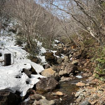 雪が解け、ベンチも出てきた