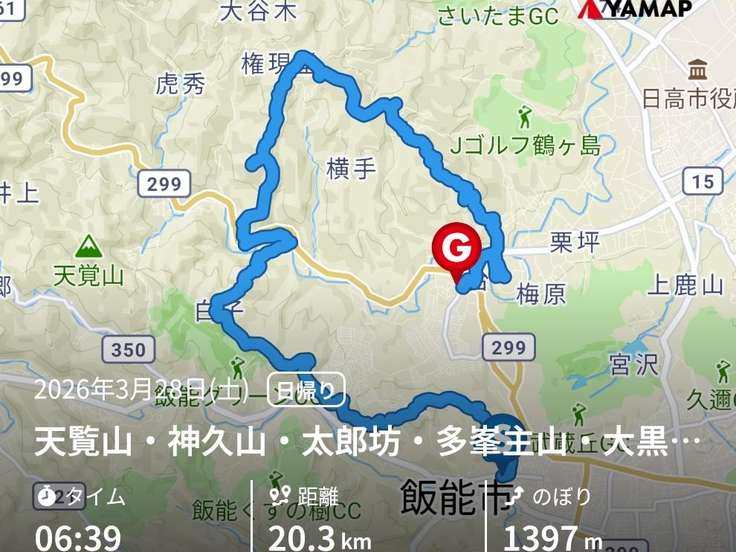 もらった絵文字14写真12枚02:307.6 km606 m橋本山・西ユガテ・西大峰(土山ノ峰)・深沢山東峰・深沢山西峰・水晶山・愛宕山ヤマノススメ巡礼マップ(天覚山・大高山・子の権現)(埼玉,東京)2026.04.04 (土)日帰りまおやん