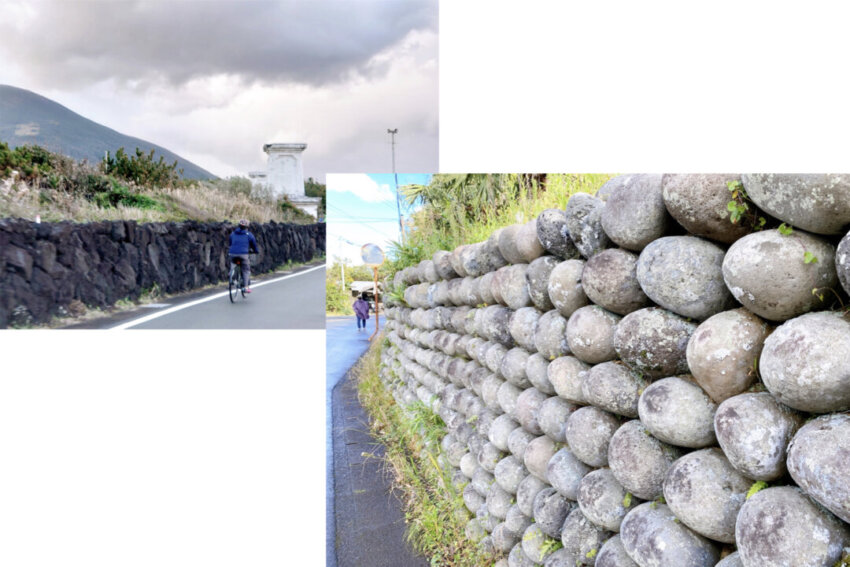 八丈富士の周辺の石垣は黒っぽく、三原山の周辺の石垣は白っぽい石。E-BIKEで巡っていると、風景がガラリと変わるのが面白かったです。