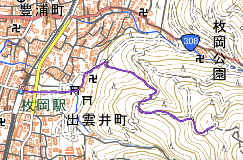 「枚岡神社・神津嶽 往復コース」の歩行時間・歩行距離・アクセス