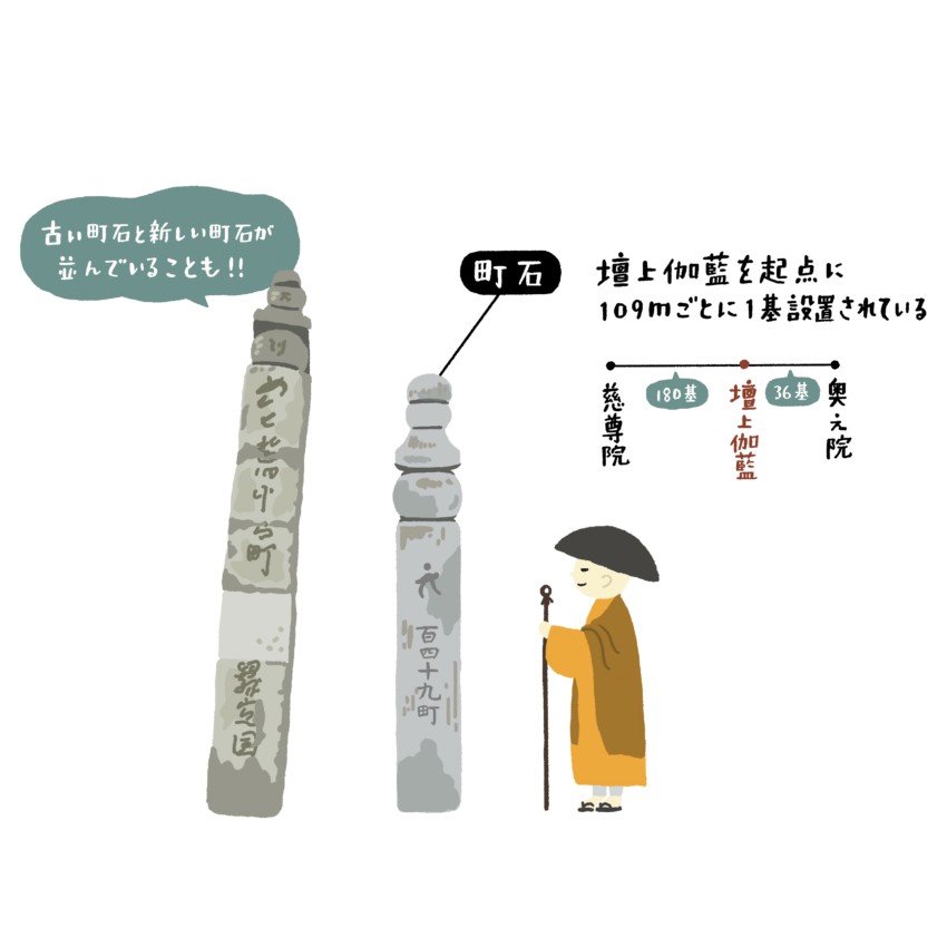 109メートルごとに置かれた町石が、文字通りこの道のマイルストーンに