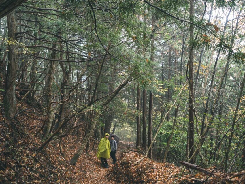 足元の落ち葉は濡れて滑りやすくなるけれど、女人道の道幅は全体的に広く、危険な箇所も少ない。悪天候でも「怖い」というよりはしっとりとした静けさを感じる
