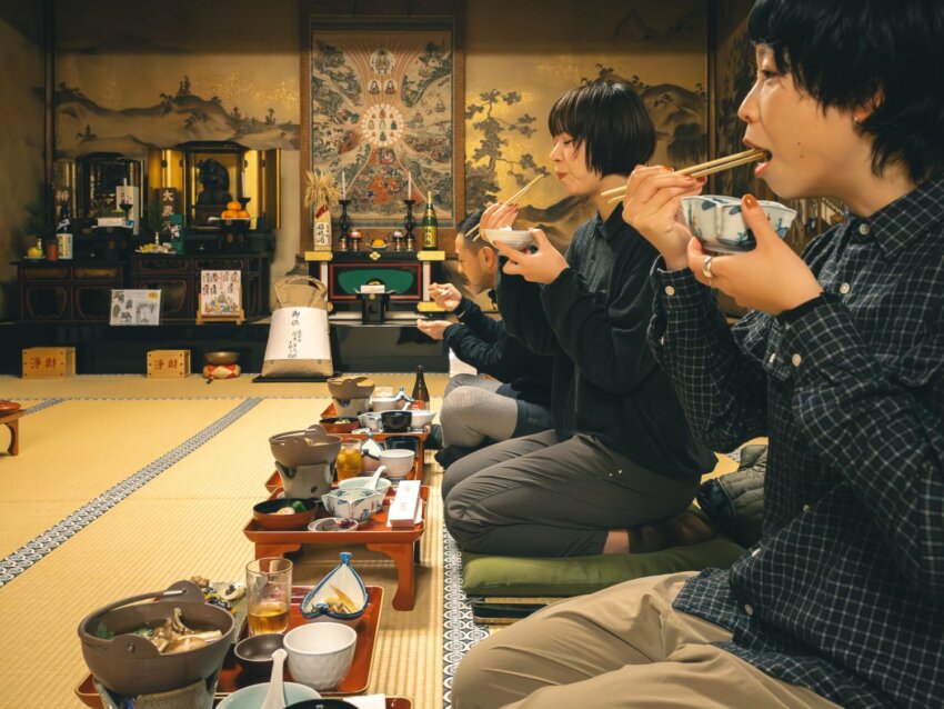 やがて夕食の時間。生まれて初めての精進料理は、想像していた「ダイエットごはん」的なものとはまるで違っていた。野菜や豆腐、こんにゃくを中心にした料理は、一品一品が丁寧で、味付けもやさしい。