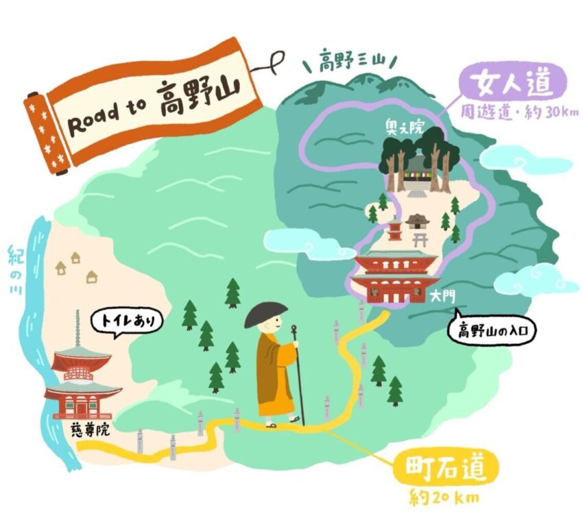 ジュンが立ててくれた計画では、高野山の旅は前泊をしてから2泊3日。初日の「町石道」と2・3日目の「女人道」を合わせて、3日間で約50キロを歩くルートだという。数字だけ聞くと「そんなに歩けるかな」と身構えてしまうけれど、一日ごとの距離配分はちょうどよくて、ペースさえ守れば無理なく歩き切れそうな行程だった。