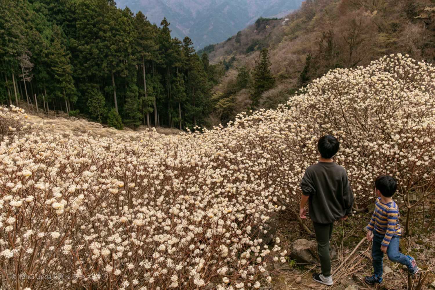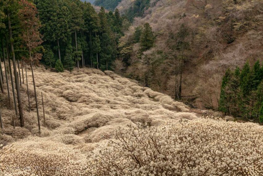 ミツマタは沢沿いに点在し、光の入り方や湿度によって表情を変えます。そこに広がる景色は、晴天時の明るさ、曇天時の落ち着き、どちらも魅力的。その空気感も含め、写真ではなかなか伝えきれないので、ぜひ現地で体感していただきたいです。