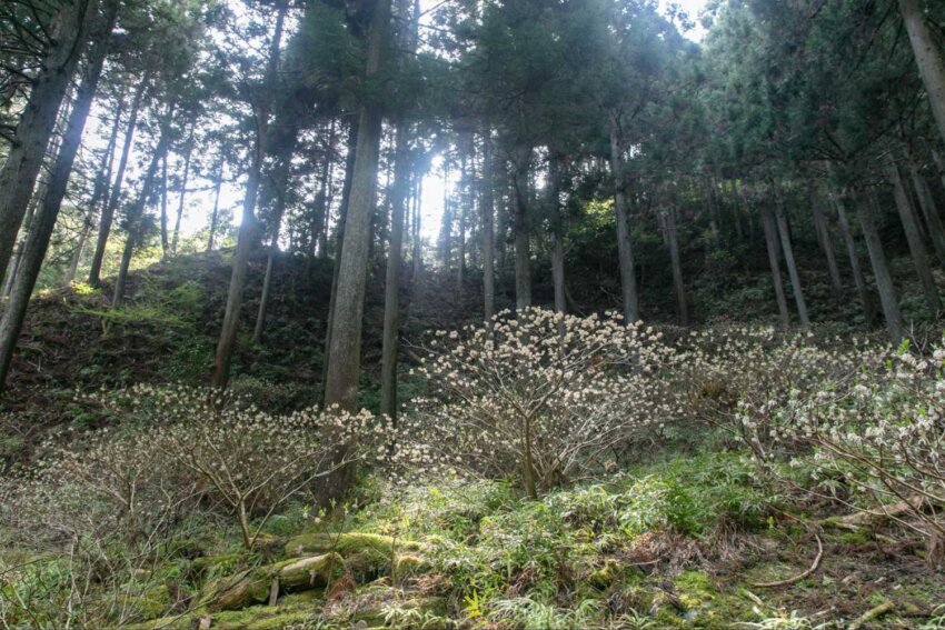辺り一面がミツマタで覆い尽くされる屋敷山