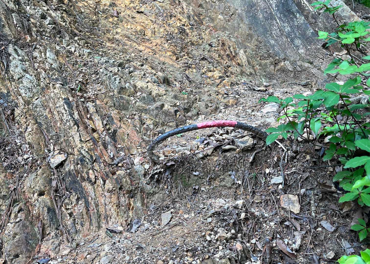 階段か何かの金具がループ状に露出している箇所がある。まるでくくりわなのようでこれは怖い!
