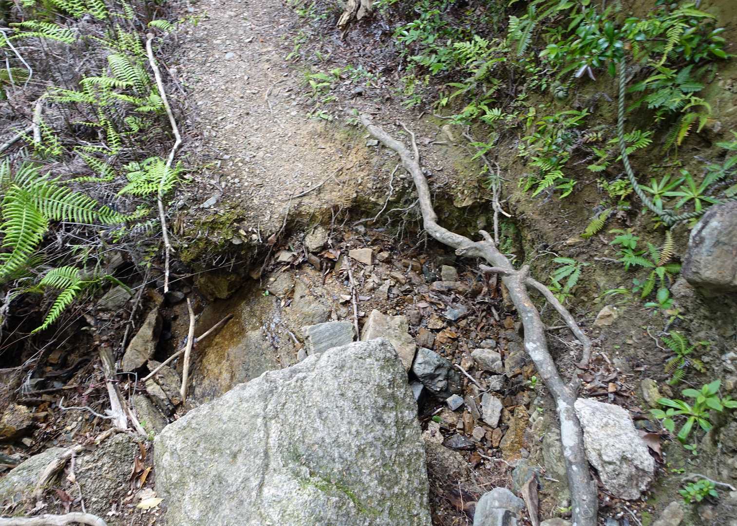 登山道(正確には治山堰堤の天端の一部)が完全に陥没しています。