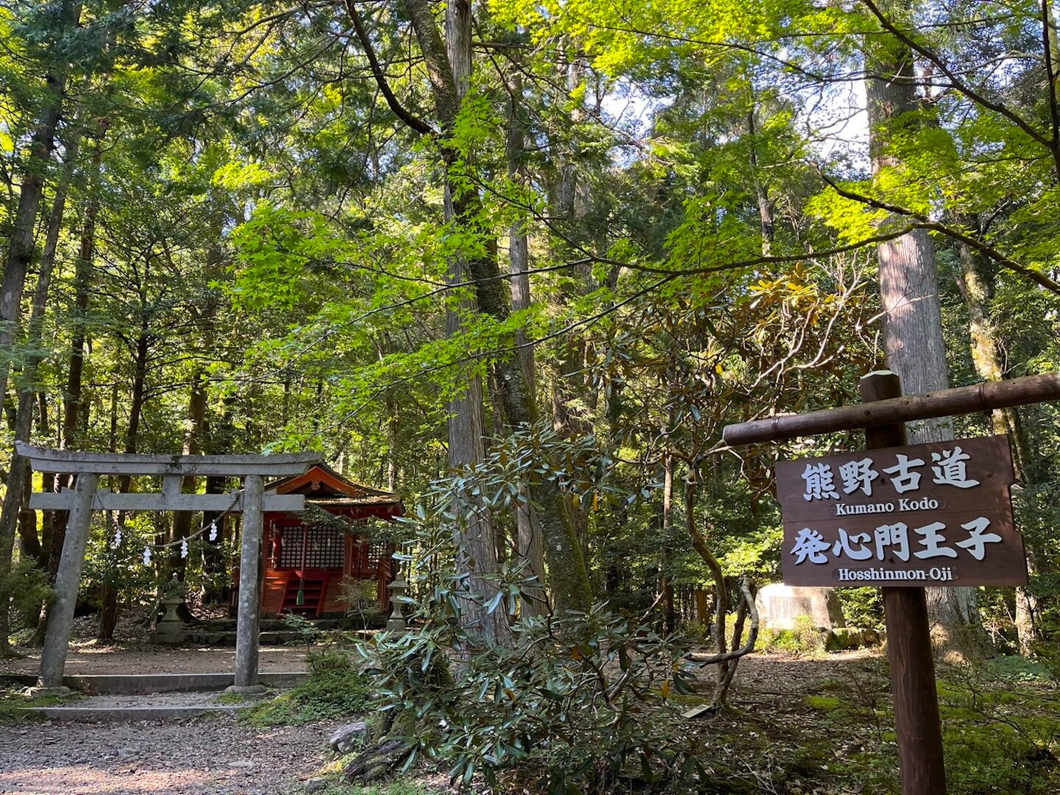 コースのスタートは「発心門王子」。“仏の道に帰依する心を発する門”という意味を持っており、ここから先は熊野本宮大社の神域と考えられてきました。かつては、神域への入口となる大きな鳥居があったとも伝わっています。