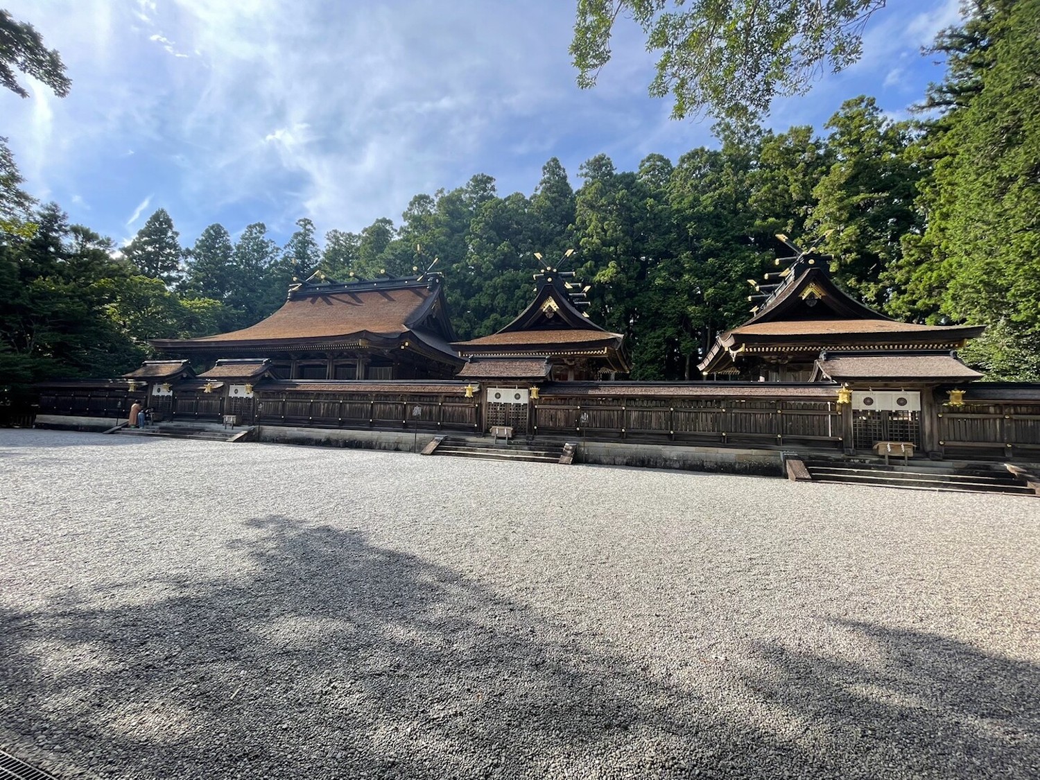 伏拝王子から、下りと登り返しを経ていよいよ熊野本宮大社へ。途中には「ちょっと寄り道展望台」もあり、その名の通り「大斎原」とその背後を滔々と流れる熊野川を一望することができます。展望台から30分ほどで熊野本宮大社へ到着。