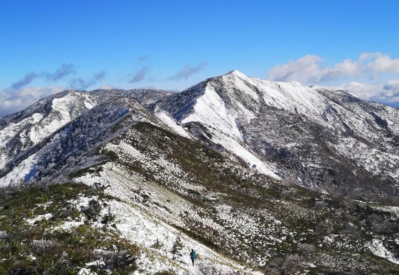 群馬県の北部にあり、谷川岳と日光白根山を線でつなげたその中間点にそびえる。穂高岳に読みが似ているため上州武尊山と呼ばれることも多い。すばらしい展望を持ち、初夏~夏は花々に彩られる魅力的な山でありながら、百名山のなかでは知名度が低めで、国内の標高2000m以上の山としては唯一、自然公園に指定されていない山でもある(林野庁の自然休養林には指定)。一見、なだらかな山容をもつが、山上部は鋭い姿の峰が並ぶうえに深い谷が数多く切れ込み、そのせいか、県内ではツキノワグマの生息密度が高い山でもあるそうだ。ヒマラヤで活躍した地元(沼田市)出身の登山家、山田昇氏を顕彰した“上州武尊山スカイビュートレイル140(山田昇メモリアルカップ)”の舞台ともなっている。
