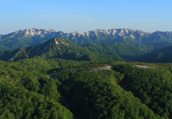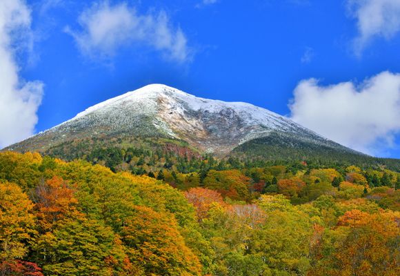 岩木山は青森県弘前市と鰺ヶ沢町に位置し、標高1,625mは県内一の高峰である。信仰の対象として古い歴史をもつ、津軽の人々のふるさとの山となっている。山中には5本の登山コースがあるが、よく歩かれるのは「津軽一の宮」岩木山神社里宮からの百沢コースと、名湯・嶽温泉からの嶽コース。前者は岩木山固有種のミチノクコザクラ(花期7月中旬・ただしこの頃はまだ残雪がある)が見られる。後者は山麓からブナ林をひたすら登っていくコースだが、八合目まで車道が通っているので(さらにリフトで九合目まで行ける)、短時間で岩木山神社奥宮が建つ山頂に立てる。その山頂からは、同じ県内の名峰・八甲田山や白神岳、津軽海峡などの雄大な展望が楽しめる。