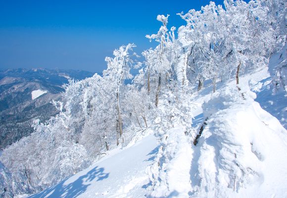 三重・奈良県境の台高山脈に位置する、日本百名山・大台ヶ原山。その最高点が標高1695mの日出ヶ岳だ。大台ヶ原はダイナミックな景観が展開する東大台と、豊かな樹林が広がる西大台(入山には事前申請とレクチャーの受講が必要)に分類され、日出ヶ岳は東大台に属する。熊野灘や大峰山脈、条件がよければ遠く富士山をも望む山頂へは、バス便がある大台ヶ原駐車場から40分ほど。ただこれだけでは物足りないので、絶景が広がる大蛇嵓や、立ち枯れのトウヒが立つ正木ヶ原などセットにした一周約4時間の周回コースがおすすめ。登山適期は5月上旬~11月中旬。日本有数の降雨量のあるエリアだけに、雨への対策は万全に。