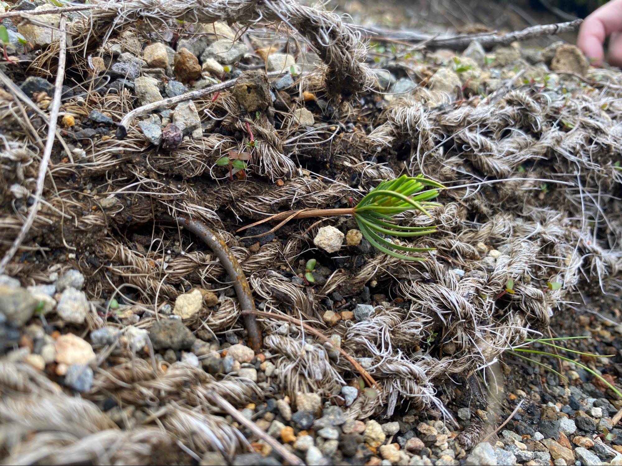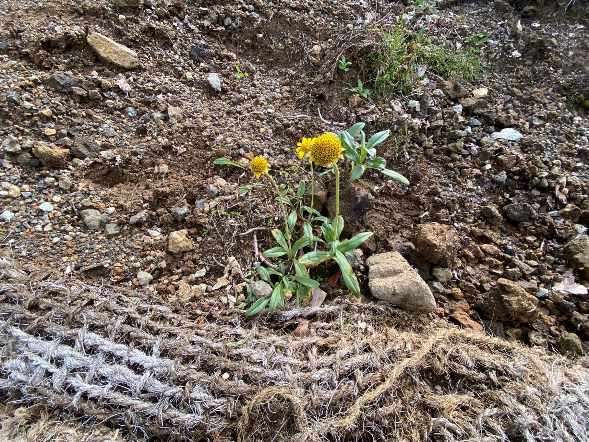 2021年10月、22年10月に整備した箇所。土砂の流出を防ぐために置いたヤシネットが下方に流れてしまったため、2024年8月7日に手直しをしました。